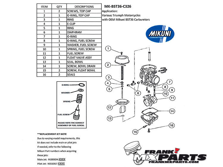 Original Mikuni aus Japan, hochwertige Teile. Das Kit enthält alle Teile, um den Serienmäßig verbauten Vergaser vollständig zu überholen. Diese Teile kosten bei den Triumph Händler das doppelte…